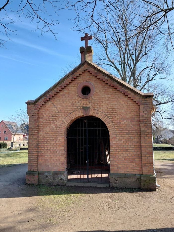 Ein größerer Teil der ca. 30 Gräber ist von Soldaten die beim Versuch den Vormarsch der Amerikaner Ende März 1945 zu stoppen ums Leben kamen.